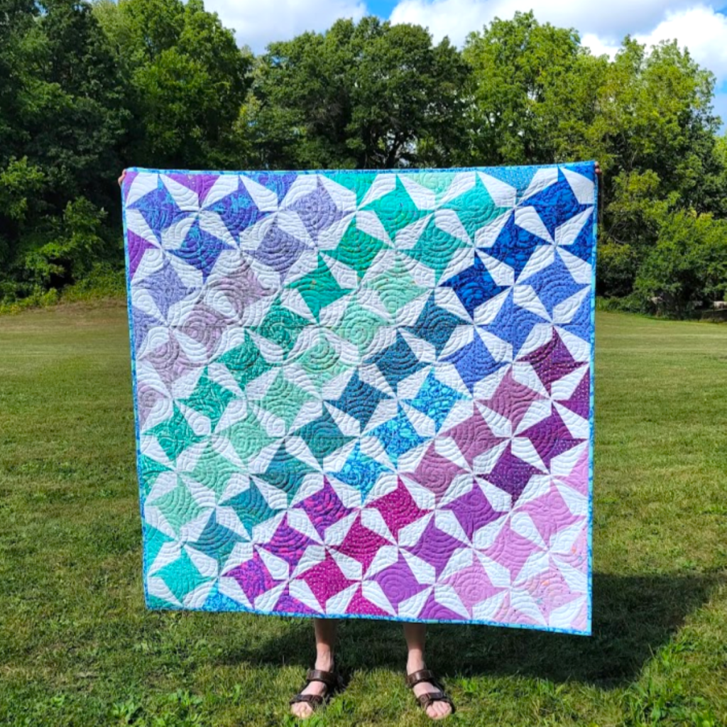 And for those who would like a better look at the quilt I’m holding in this video – it’s one of my variations of the wonderful Confetti Quilt pattern from Tied with a Ribbon. All the fabrics (except the white) are from Tula Pink and it was beautifully quilted by my friend Terri of Threadtales Quiltworks – and held up for photography by John.